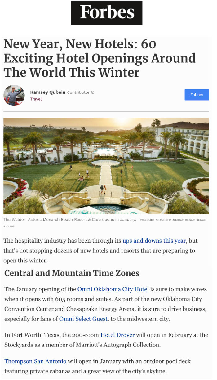 Forbes – New Year, New Hotels: 60 Exciting Hotel Openings Around The World This Winter